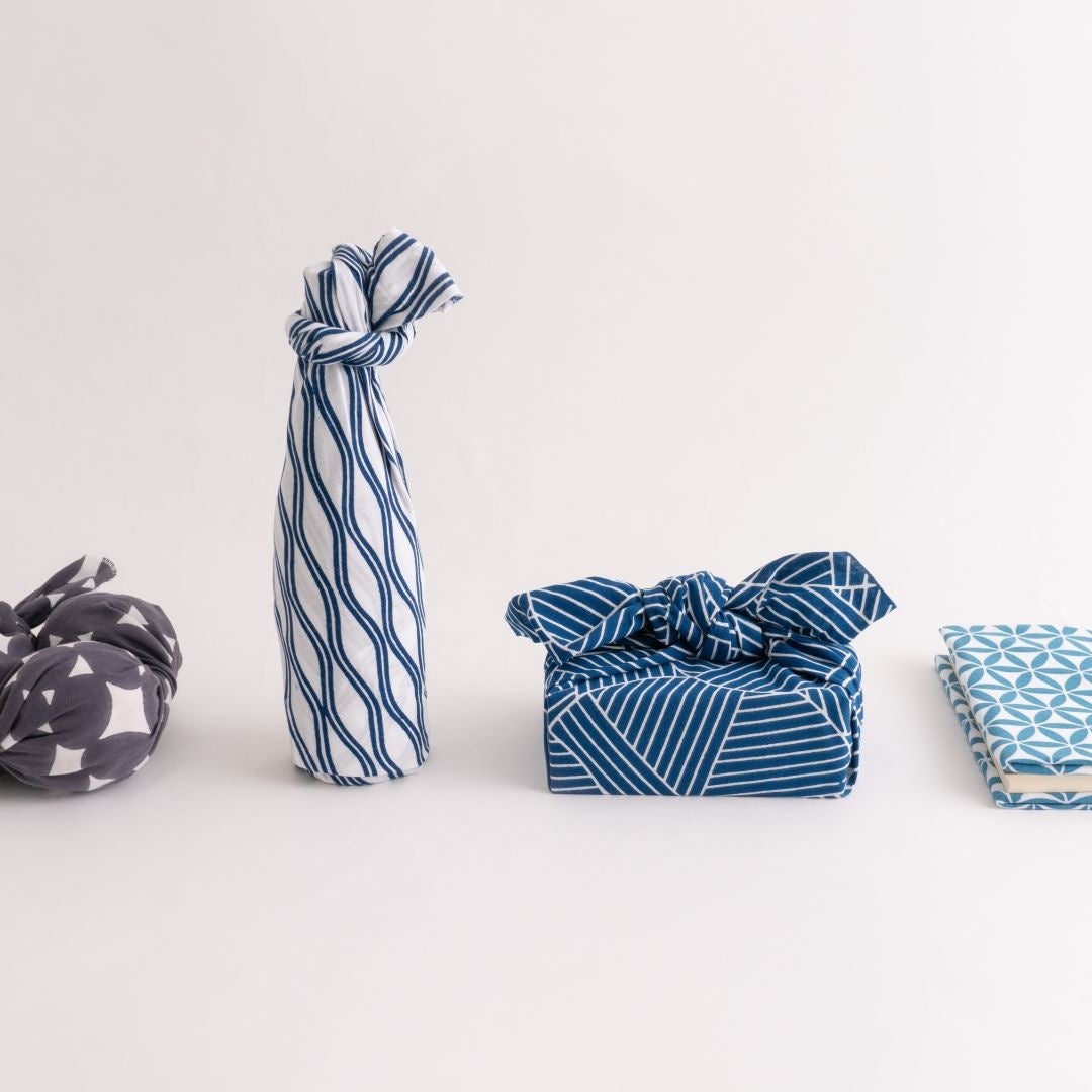 手ぬぐいの魅力は、洗うほどにやわらかな手触りに変わっていくこと。色と柄が豊富なこと。長く使える日用品であり、生活のなかの小さな工藝品です。お弁当や手土産から、日本酒の四合瓶やワインボトルのようなかたちのものまで包めるのも手ぬぐいならでは。多用途にくりかえし使えて、とてもエコロジカル。シーンにあわせて、手ぬぐいの柄と包み方を選んでみては。