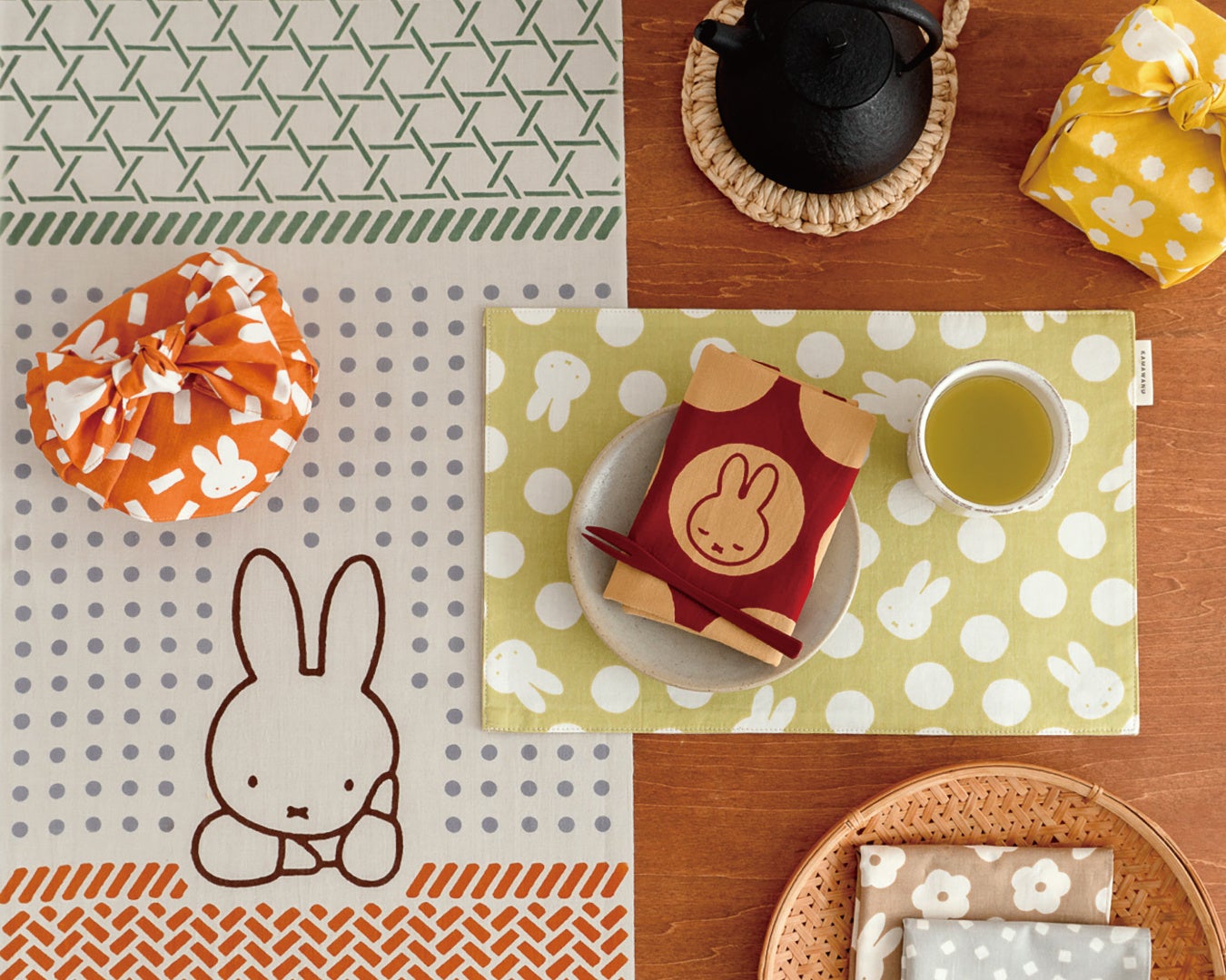 株式会社かまわぬ(代表取締役:加藤一宏、本社:東京都渋谷区)は、2024年8月19日(月)より「miffy &かまわぬ ~暮らしの文様~ vol.7」を発売いたします。てぬぐい専門店「かまわぬ」が展開する第7弾は「ミッフィーと楽しむ秋」がテーマ。オランダの絵本作家・グラフィックデザイナーのディック・ブルーナが描き、世界中で愛され続けているうさぎの女の子・ミッフィーが、かまわぬの定番アイテムである手ぬぐいや小風呂敷、そして今回初となる「おやつしき」になって登場します。秋を感じる第7弾、是非この機会にお求めください。