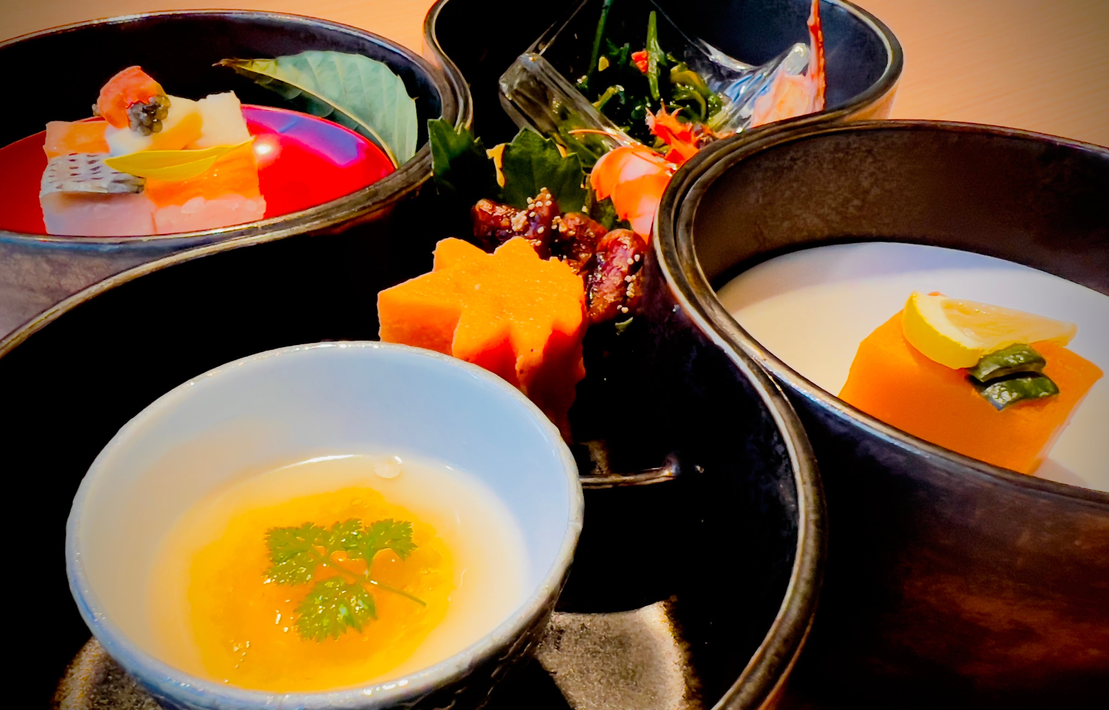 ・八寸 蕪のムース コンソメジュレ ほか