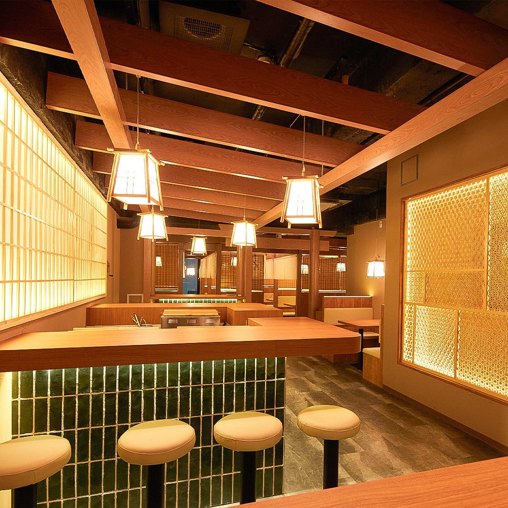 京出汁おでんと旬菜天ぷら 鳥居くぐり新宿店のカウンター席は、肩肘張らないカジュアルな雰囲気で気兼ねなくご宴会をお楽しみいただけます♪