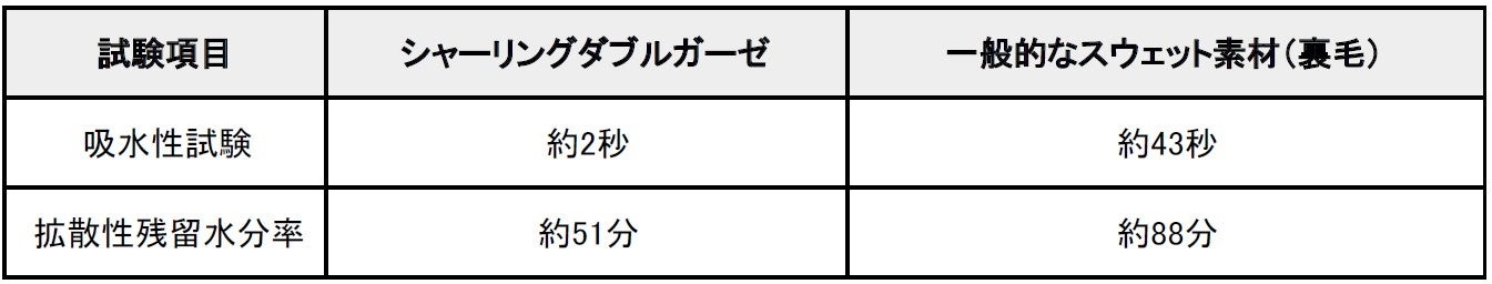 ~吸水性約2秒、第三者試験で実証された「シャーリングダブルガーゼ」の快適性~