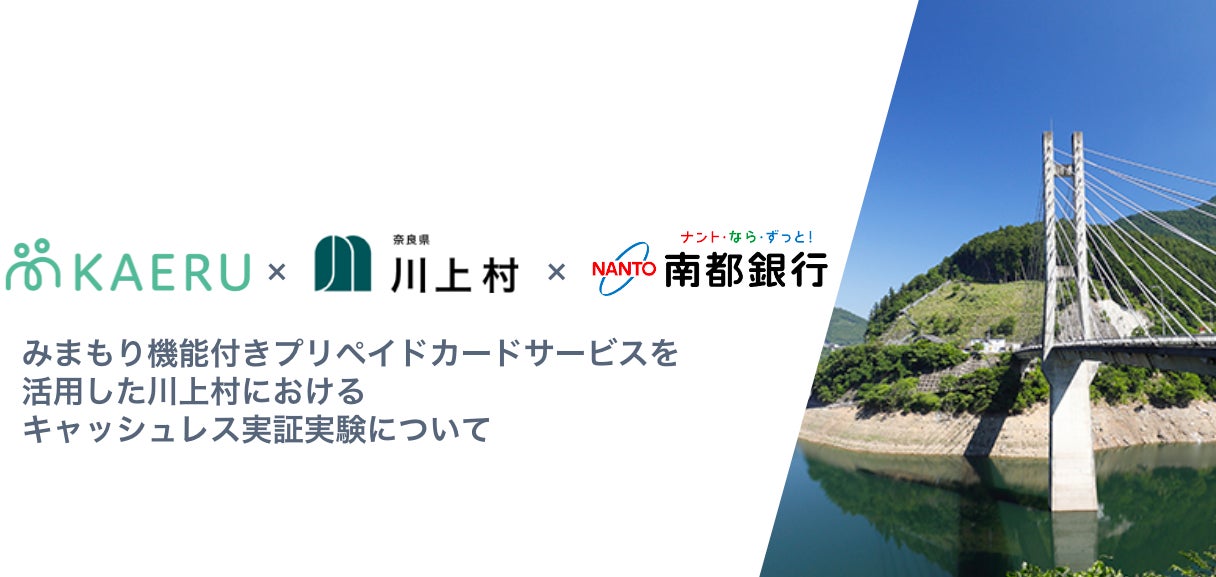 エイジテック/フィンテックサービスを提供するKAERU株式会社、奈良県川上村および南都銀行と共同で「キャッシュレス実証実験」を開始