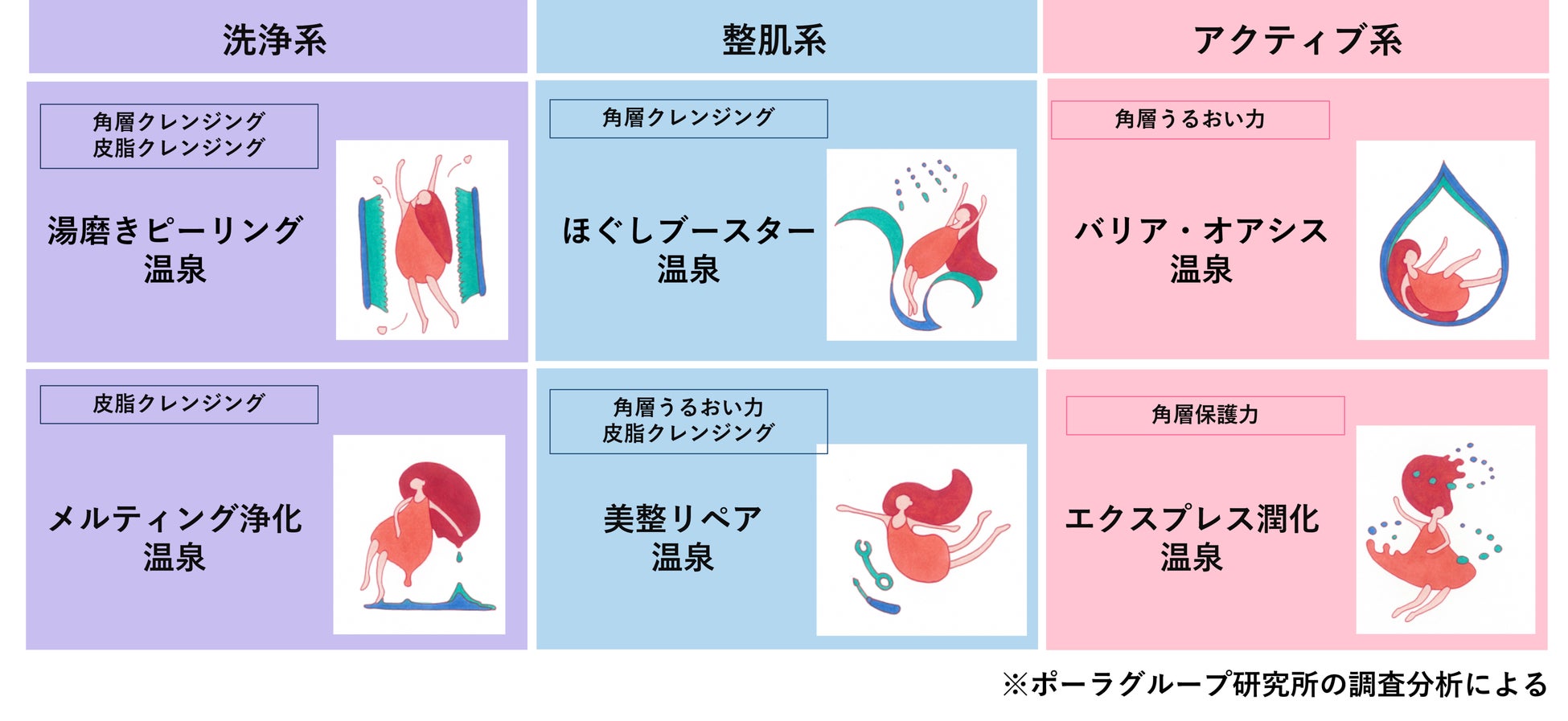 「湯磨きピーリング温泉」、「メルティング浄化温泉」