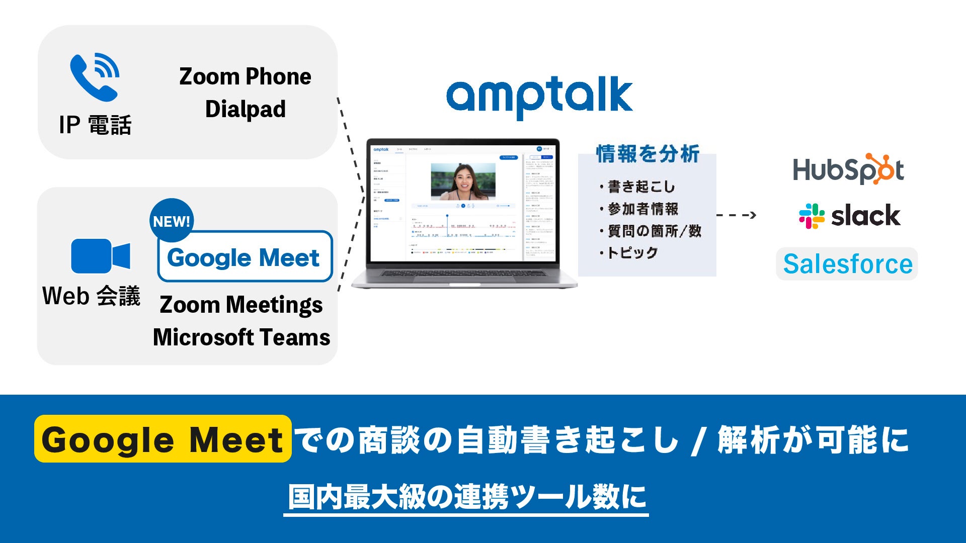 セールスイネーブルメントツール「amptalk」、Google Meetと連携。IP電話やオンライン商談ツール、国内最大級の連携ツール数に