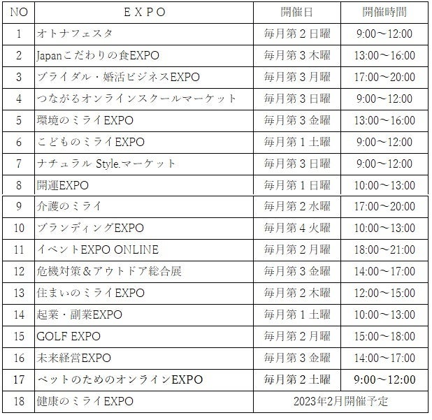 ンEXPO」開業1周年の記念アワードを成功させた。そして今年12月にはメタバースバーチャル展示会を初開催する。これまで18企画のオンラインEXPOをスタートさせ、開催数は100回以上、のべ出展は2,300社を超え、月間2,000名の来場を誇る。