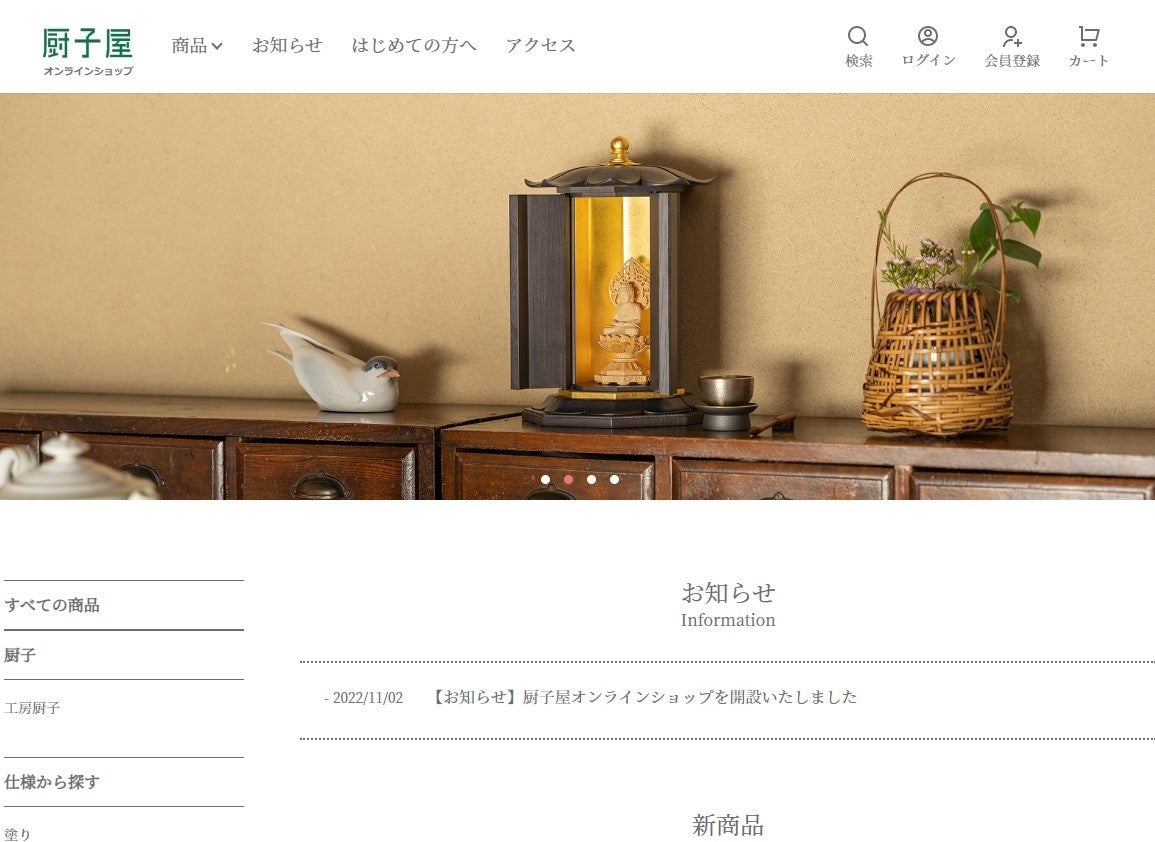 そういったことから、様々な方々に厨子や仏様、祈りの調度品をご覧いただき、時代に合った供養・祈りの場を提案するサイトとして、リニューアルを実施しました。