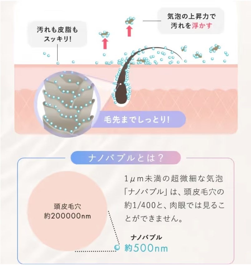 1. ナノバブルで頭皮の蓄積汚れを優しく落とす