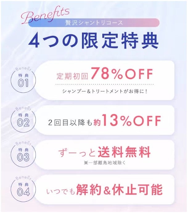 贅沢なシャンプー&トリートメントセットを78%オフ*³で提供中