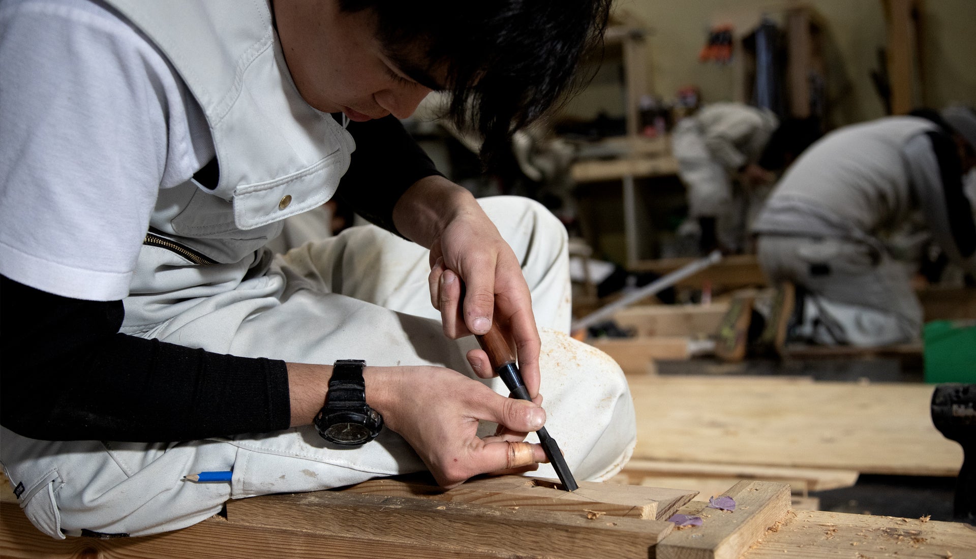 当日は、未来の棟梁を目指す若手大工たちが、一人前の職人へと成長していく過程、そして技術研鑽に励むリアルな姿を間近でご覧いただけます。彼らがどのように課題に向き合い、精度の高い「ものづくり」を実現していくのか、その真剣な眼差しと職人技は必見です。