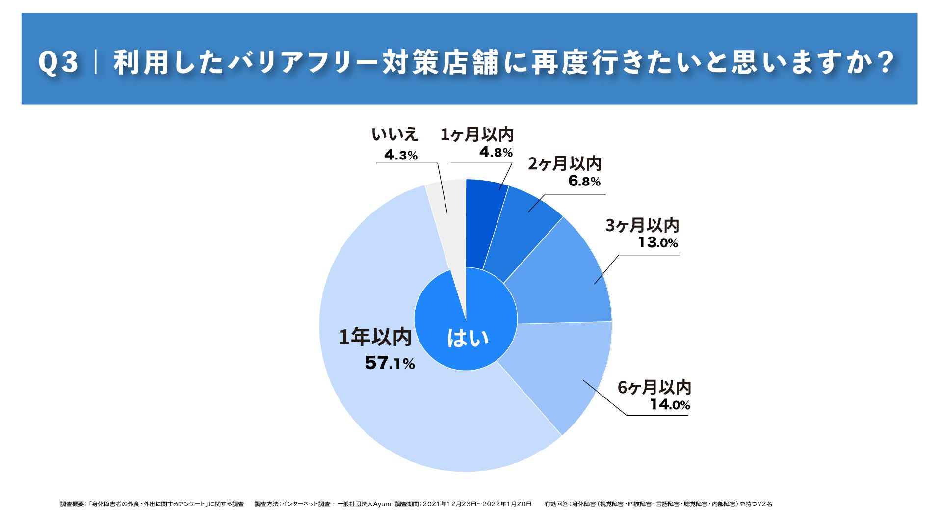 今回の調査では、ハード面や接客による配慮を含めたバリアフリー対策の重要性だけでなく、バリアフリー対応をすることで新規集客のきっかけやリピーターの確保にも繋がることがわかりました。
