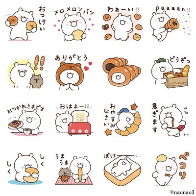 大人気のガーリーくまさん×ぱん結びのコラボLINEスタンプを配信中!