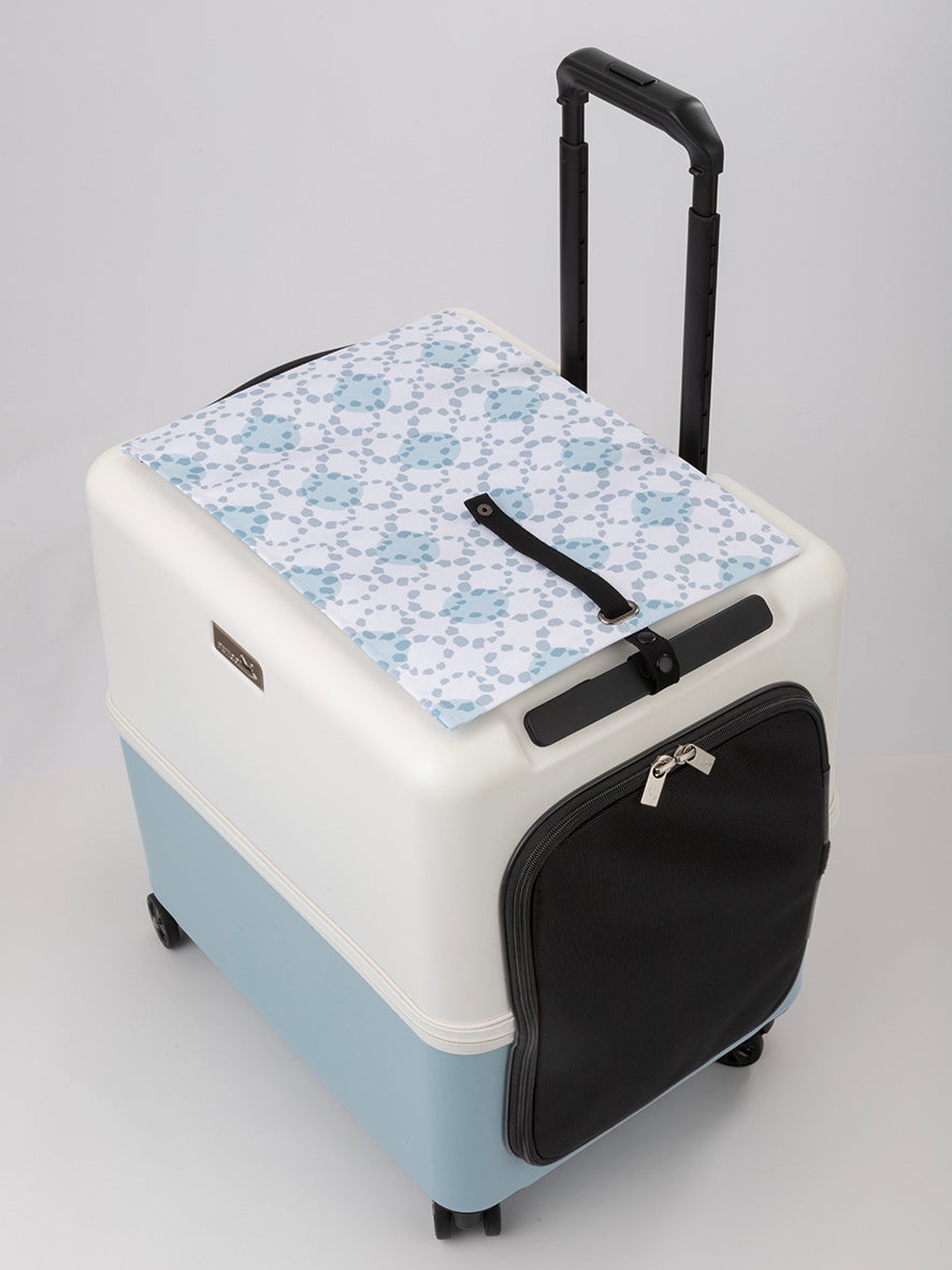今回新たに発売する『ロールカーテン サンシェード』は、慣れない場所や人が多い場所などへのお出かけ時に、ペットを安心させるために利用したり、夏の暑い日差しからペットを守るための製品です。iCOのメッシュ扉部分に簡単に装着でき、目隠しや日差しカットの役割を果たします。使わないときは、装着したままクルクル巻いて収納できるので、手荷物を増やす心配もありません。白地にブルーのペチコオリジナルデザイン柄で、サイズはiCOのMサイズ・Lサイズ兼用のワンサイズ。価格は1枚、2,178円(税込)です。