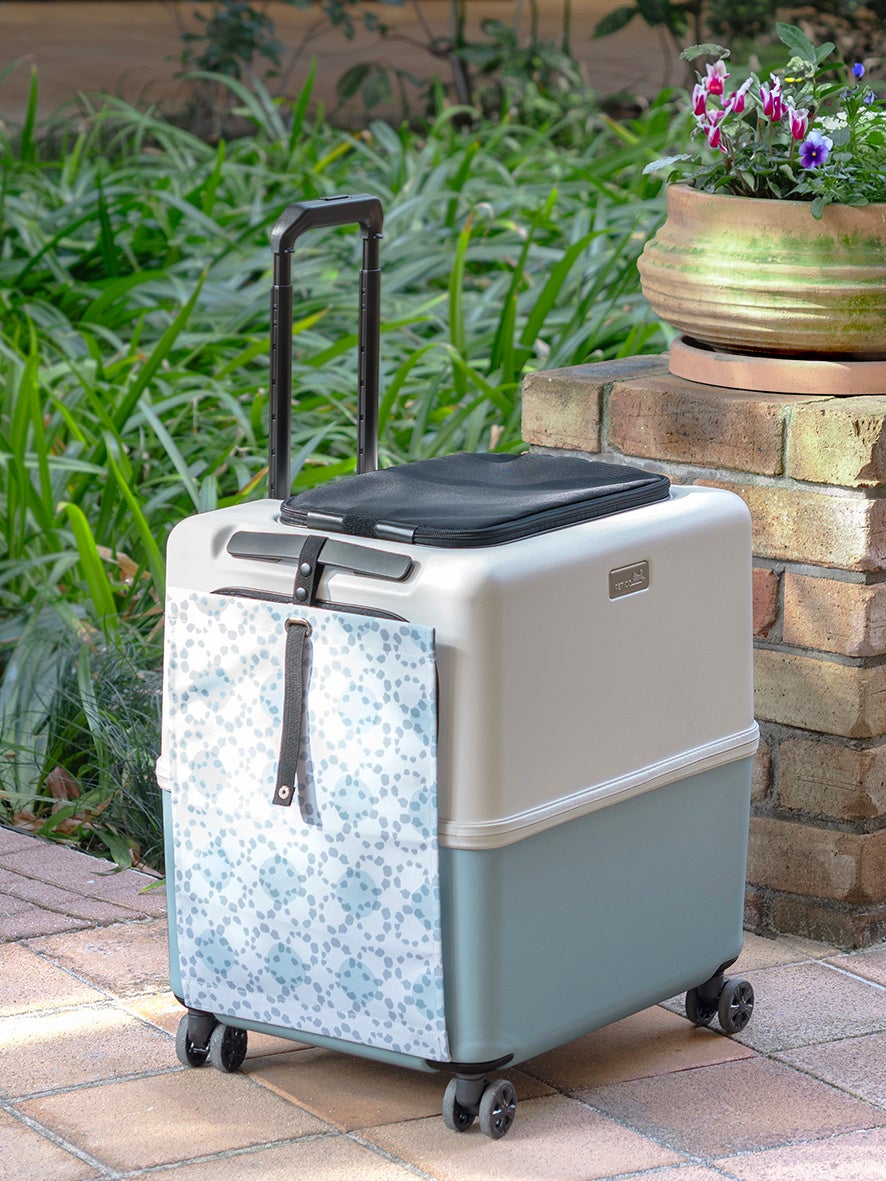 iCOは、スーツケースメーカーであるT&Sがつくった、中型犬も入れる丈夫で軽量なハードケースのペットキャリーです。スーツケースのように引いて持ち運ぶことができ、公共交通機関にも一緒に乗れる(※)ほか、ストッパー機能を使ってケースを固定すればハウスとしても利用できるため、通院やお出かけだけでなく、旅行や帰省などにも便利です。