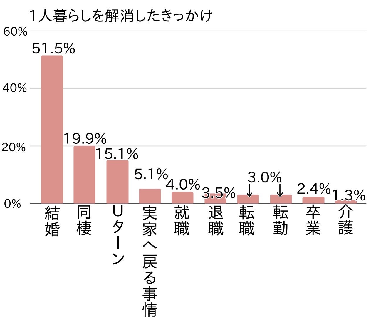 そこで、具体的にどんなきっかけで1人暮らしを解消した方が多いのかを調べていきましょう。