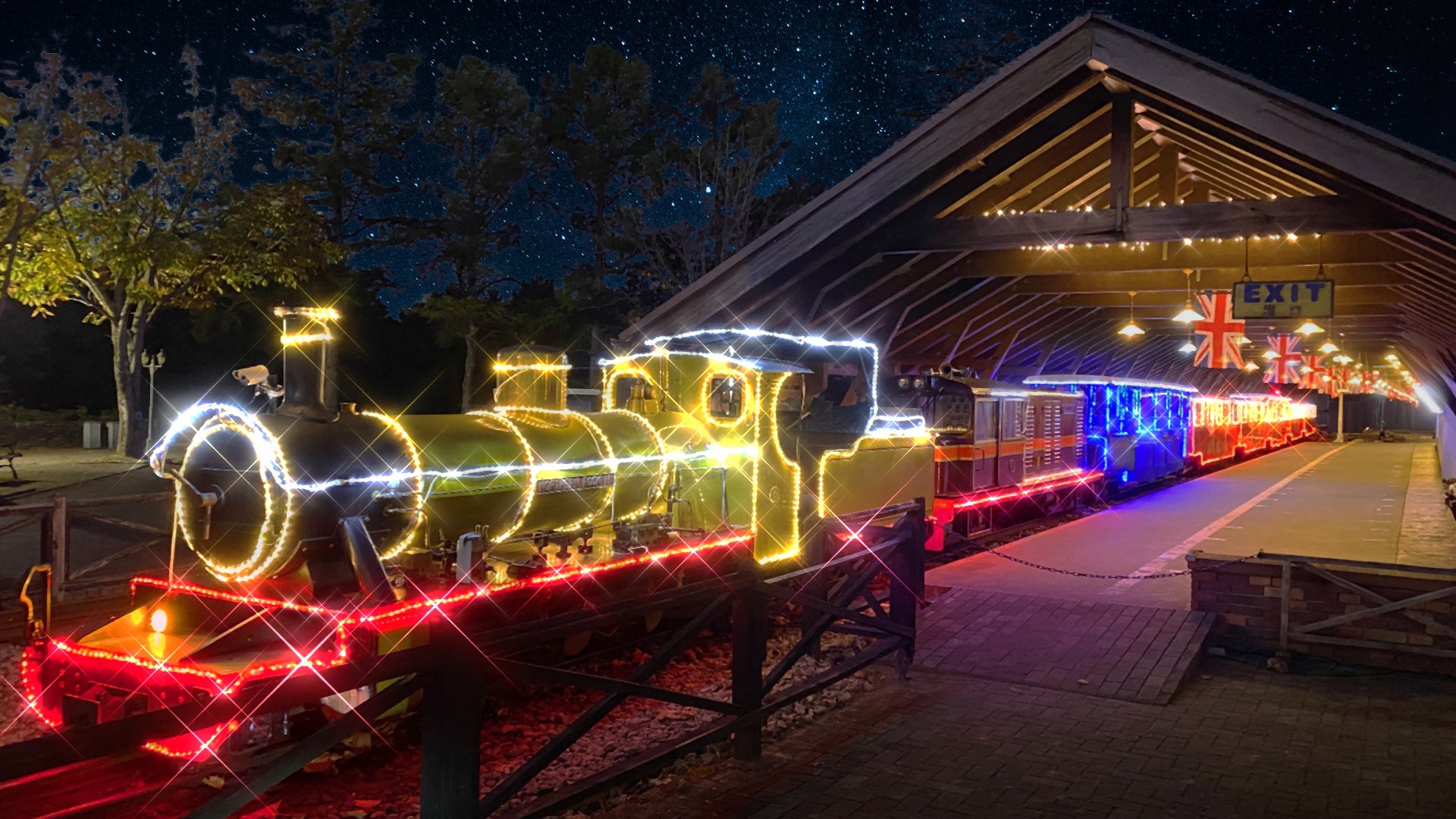 毎年大好評の「光るロムニー鉄道」が今年も登場します。光り輝く幻想的な庭園内をゆったり走るその姿は、まるで物語の中に入ったかのよう。虹の郷でしか味わうことのできない特別なSLの旅が体験できます。またワンちゃんと一緒に乗車してイルミネーションを満喫できる専用車両も人気で多くの愛犬家のみなさまにご利用いただいております。※上り下りとも、30分毎の運行です。