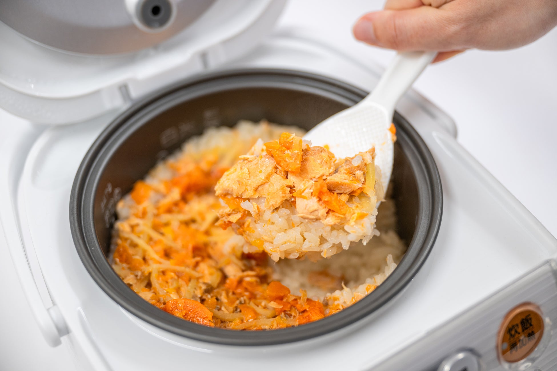 炊き上がりには、ごろっとした大ぶりのサーモンの身がふっくら。生姜の爽やかな風味とシャキシャキとした食感が、さらに美味しさを引き立てる一品です。ぜひ、ご家庭でお手軽に贅沢な味わいをお試しください。