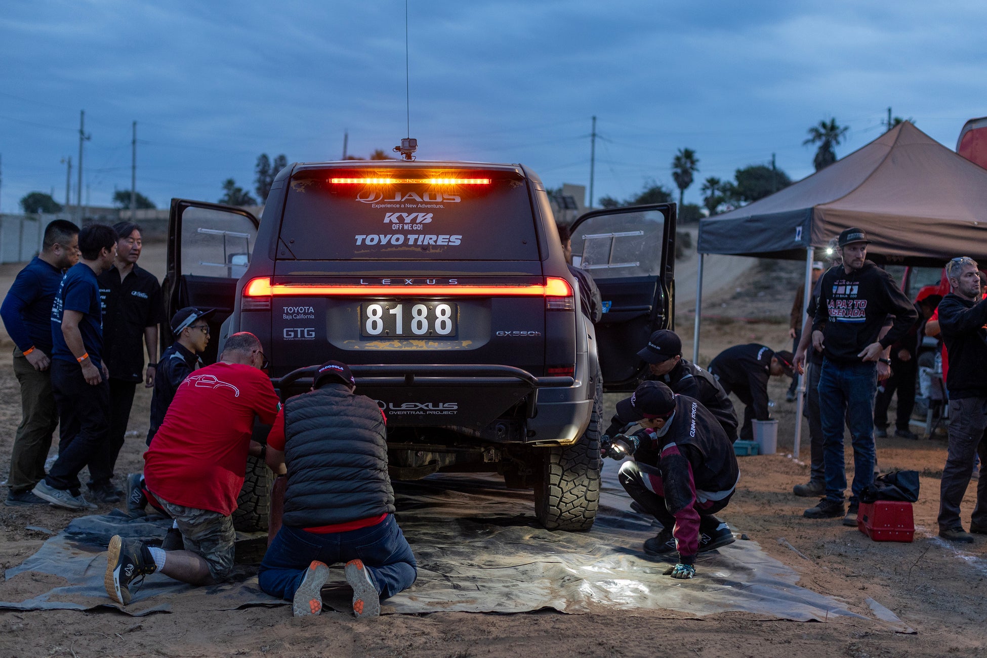 昨年、初の完走と共にクラス優勝を遂げたTEAM JAOSによる「BAJA 1000チャレンジ3ヶ年計画」でしたが、今年は“The Challenge of Going Carbon Neutral”をコンセプトに掲げた「新3ヵ年計画」へとシフトチェンジ。熟成されたLEXUS LX600から、ハイブリッドモデルのLEXUS GX550hへと切り替えての参戦となりました。