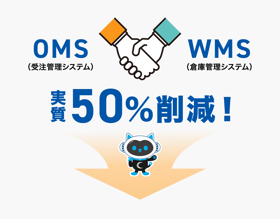 コマースロボの場合、OMSとWMSが一体になっているためシステムを一本化できコストを実質50%削減できます!