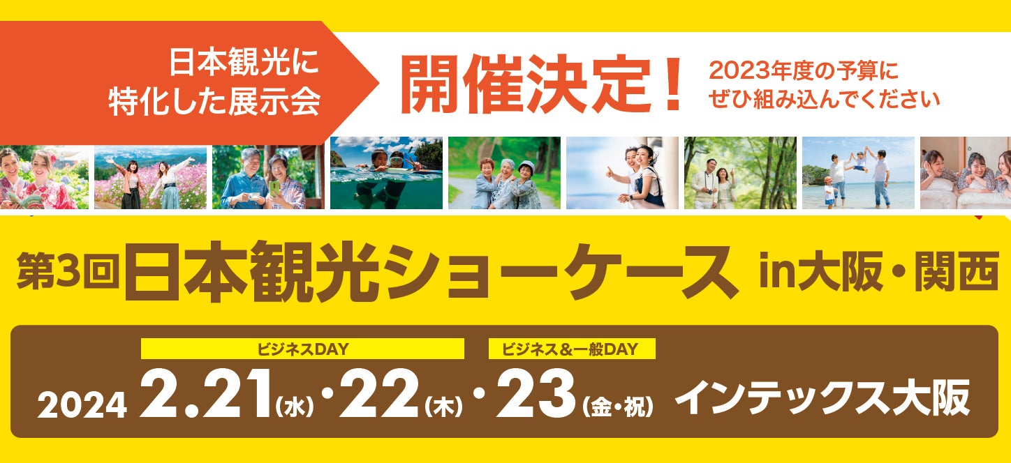 日本観光ショーケース実行委員会(委員長:落合和之 株式会社マイナビ 執行役員)は、2024年2月21日(水)~23日(金・祝)にインテックス大阪(大阪府大阪市)にて日本観光に特化した展示会「第3回 日本観光ショーケース in 大阪・関西」を開催します。