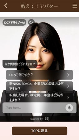 *確定拠出年金についてポートフォリオ分析をし、24時間対応でAIアバターが質問に答える