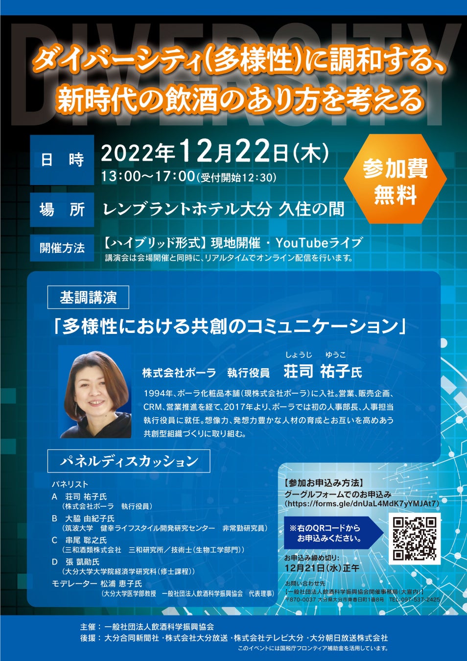 ーダイバーシティ(多様性)に調和する、新時代の飲酒のあり方を考えるー 2022年12月22日 発足記念シンポジウム開催