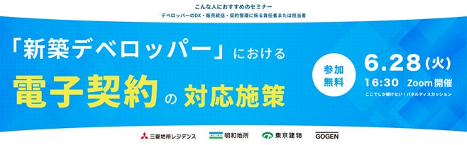 業界最安値(※)の不動産売買特化型電子契約・契約書管理サービス「Release(レリーズ)」の開発・運営を行うGOGEN株式会社(本社:東京都渋谷区、代表取締役CEO:和田浩明)は、2022年6月28日(火)16時30分より、「新築デベロッパーにおける電子契約の対応施策セミナー」をオンラインで無料開催いたします。