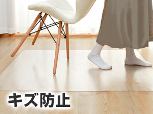 透明のため、存在感がほぼなく、部屋に部分的に敷いても違和感がない。表面のエンボス加工で床の雰囲気を損ならなく、より広く見せることもできます。