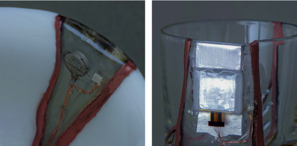 開発では大阪ヒートクール株式会社 代表取締役 伊庭野 健造さん(大阪大学 工学研究科 電気電子情報通信工学専攻 助教)、同取締役 伊藤 雄一さん(青山学院大学 理工学部情報テクノロジー学科 教授)と共に共同研究を進め、電流の方向を変えることで温度をコントロールすることができる性質をもつペルチェ素子を活用し、フレキシブルペルチェパーツを制作したことで、くちあたりや感触の変化が可能になり、廃棄物を「修復」ではなく「進化」させるプロジェクトに昇華させることができました。