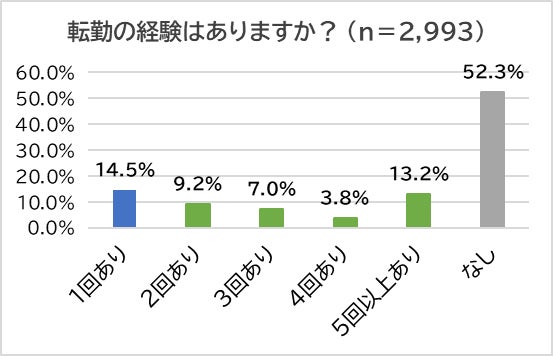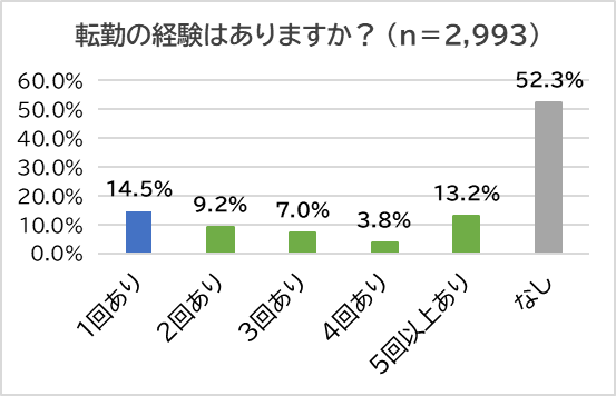 ※ 1回の転勤経験者は「1回」、複数回の転勤経験者は「複数回」と表記。