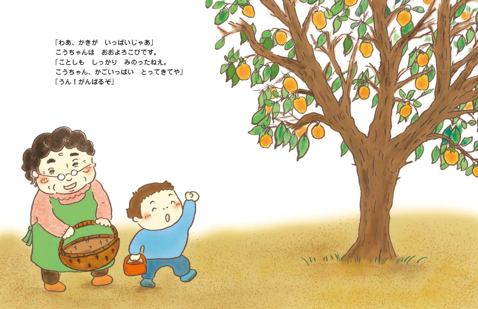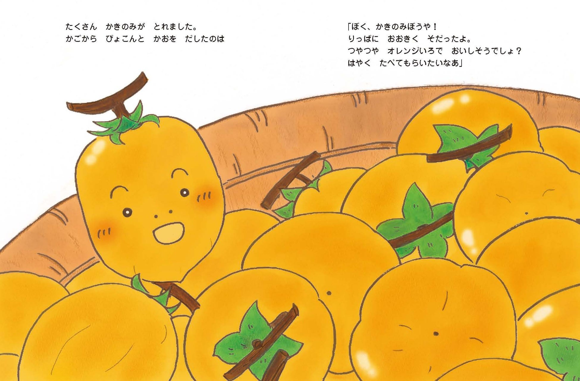 渋柿があまい干し柿に変身するまでを、かきのみぼうやの気持ちになって楽しんでもらえる絵本です。