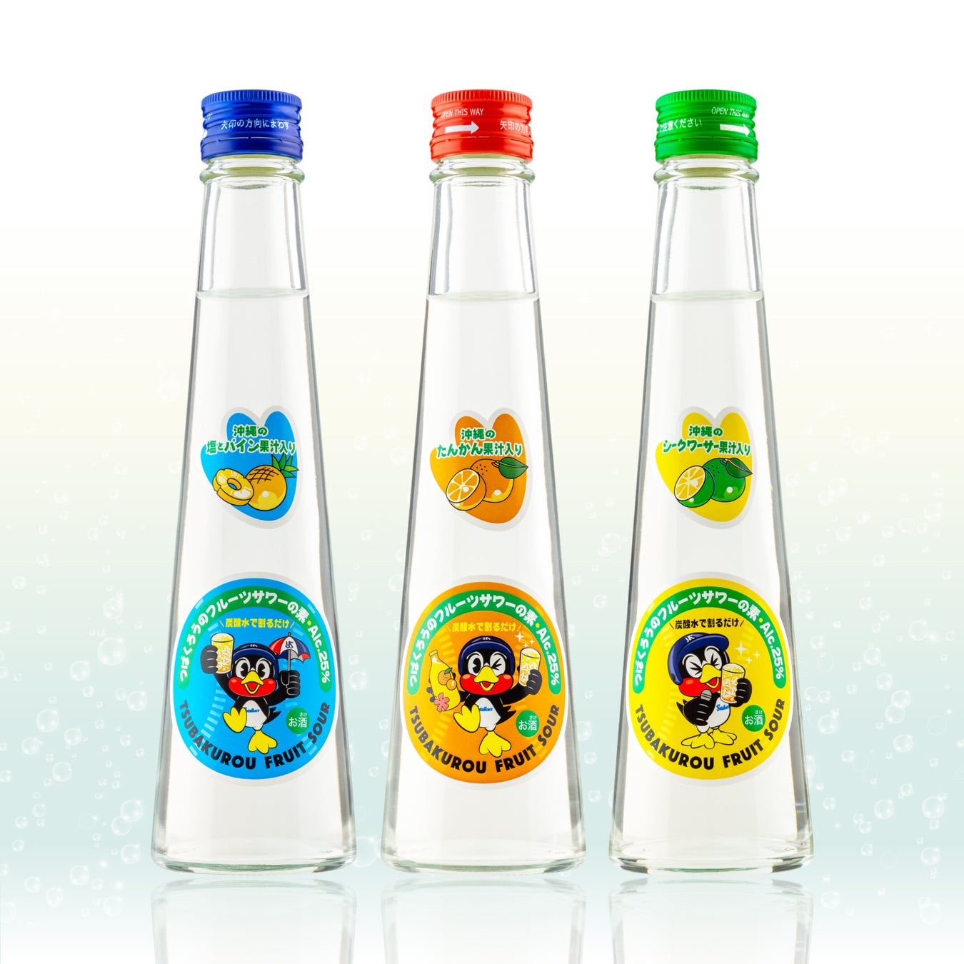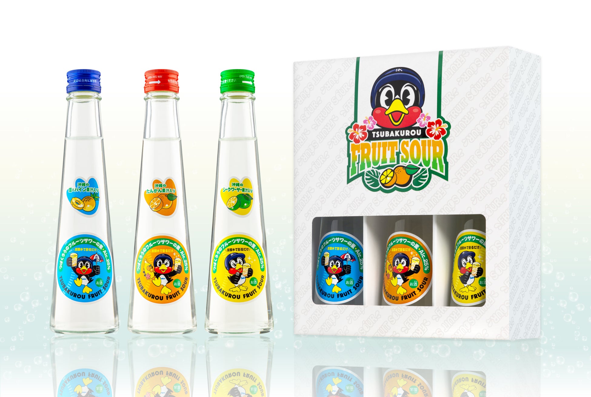今回の商品は、沖縄産果汁を使用した「つばくろうのフルーツサワーの素」です。3種類の気になる中身は、