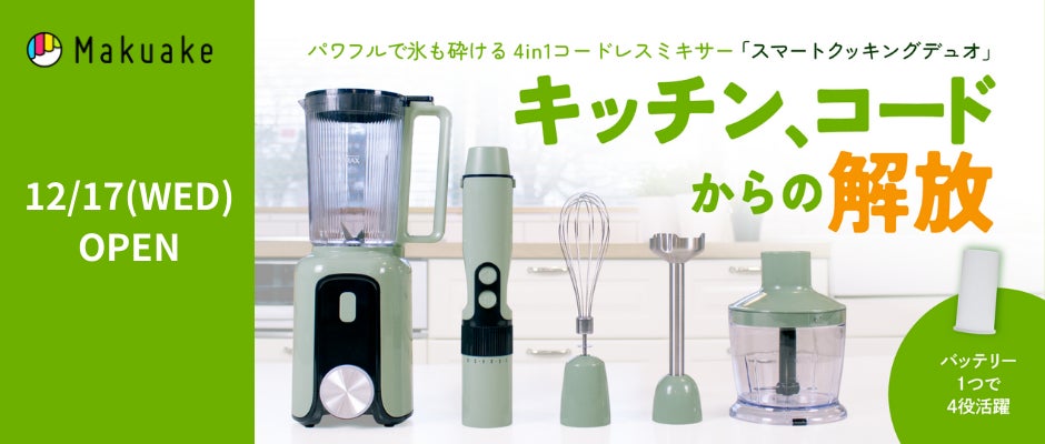 コンセント不要で、混ぜる・刻む・泡立てる・潰す。キッチンの自由度を一気に高める新発想調理家電