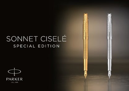 1964年に誕生し一世を風靡した「シズレパターン」を、パーカー熟練のクラフトマンが精巧なチーゼリング(細かい溝を掘る)技術を駆使して、ボディとキャップに施したスペシャルエディションが「ソネット」シリーズに登場。ハイポリッシュ加工を施すことで、首軸から天冠までペン全体が優雅に光り輝き、書くことの美しさを引き立てます。素材にもこだわり、万年筆のペン先には18金を使用。シンプルな筆記具を芸術品へと昇華させ、書かれたすべての言葉を優雅に彩る逸品です。