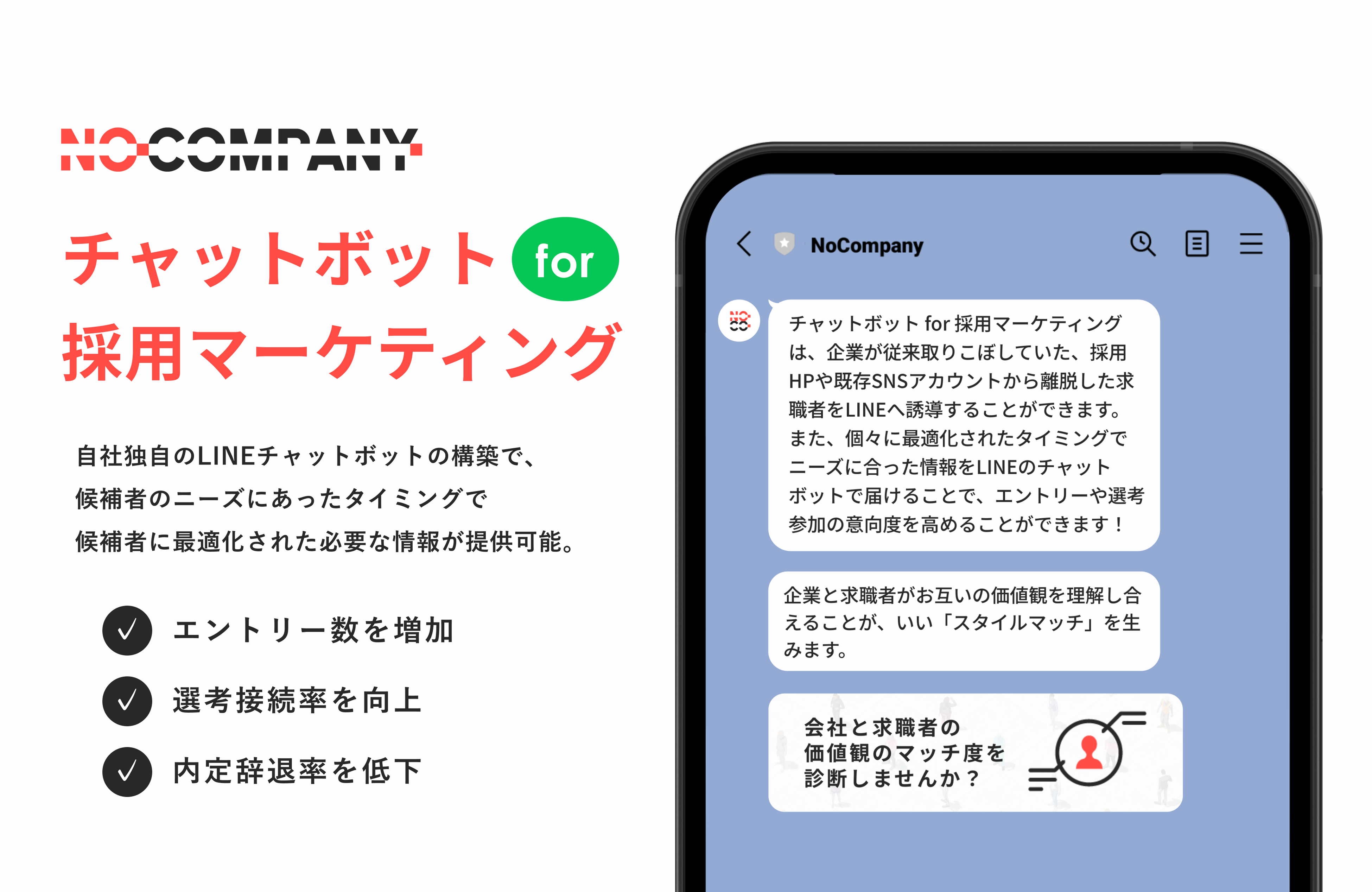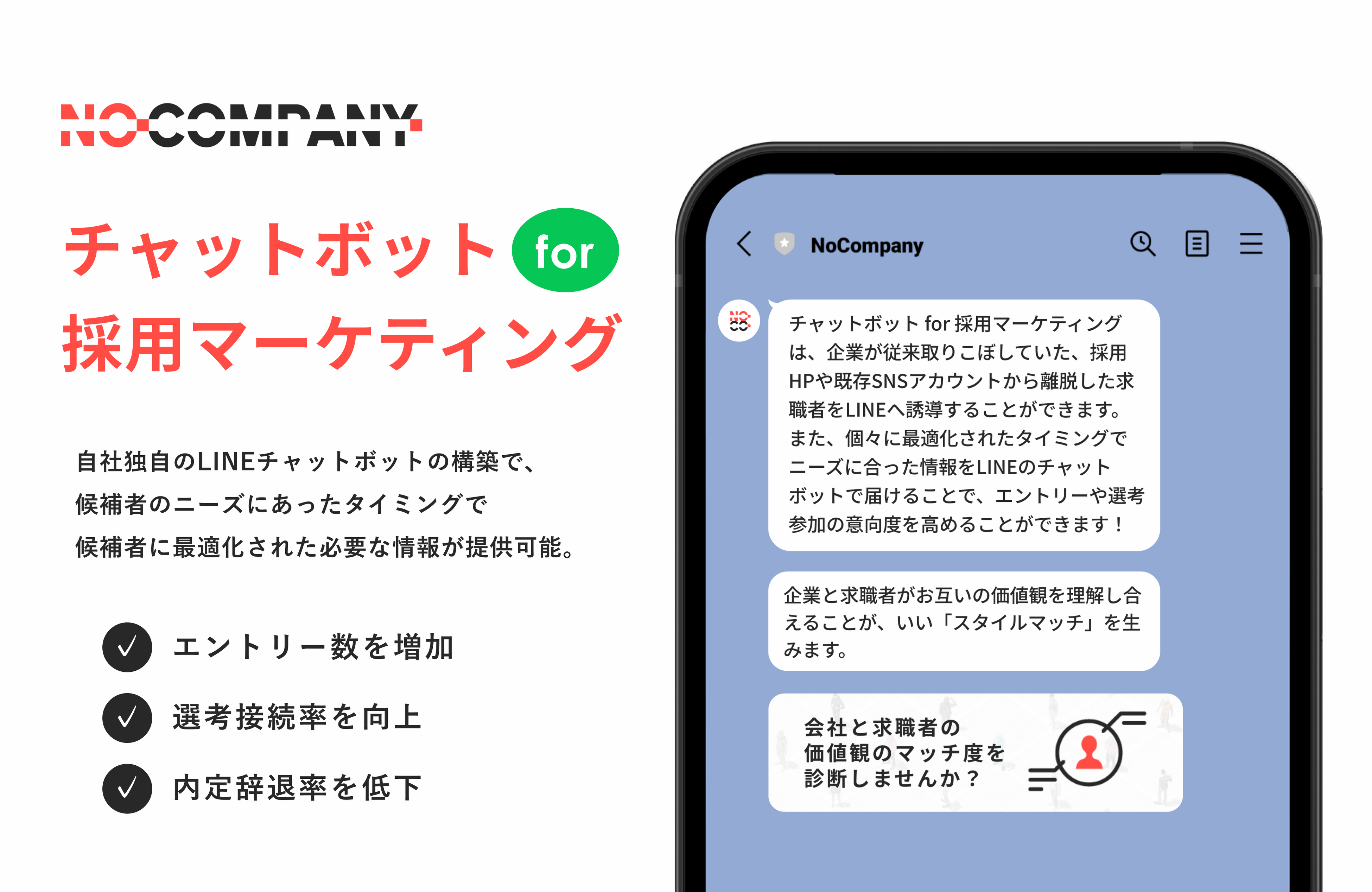 No Company、企業がLINEを使って学生、求職者のニーズに合わせた採用情報を自動配信できる「チャットボット for 採用マーケティング」を提供開始