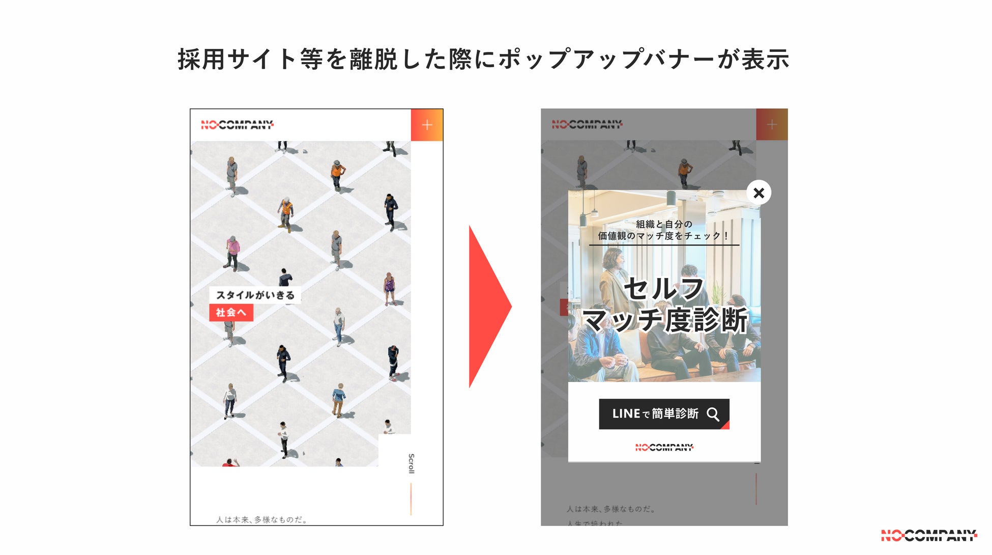 ・採用サイト等を離脱するタイミングでポップアップバナーが表示