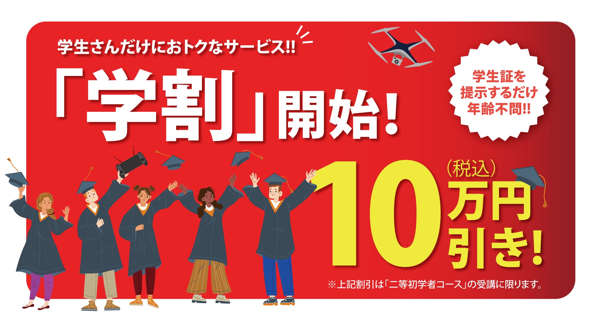 7月19日(金)よりドローン国家資格【二等初学者講習】を"10万円引き"にて受講できる「学割キャンペーン」を開始します!