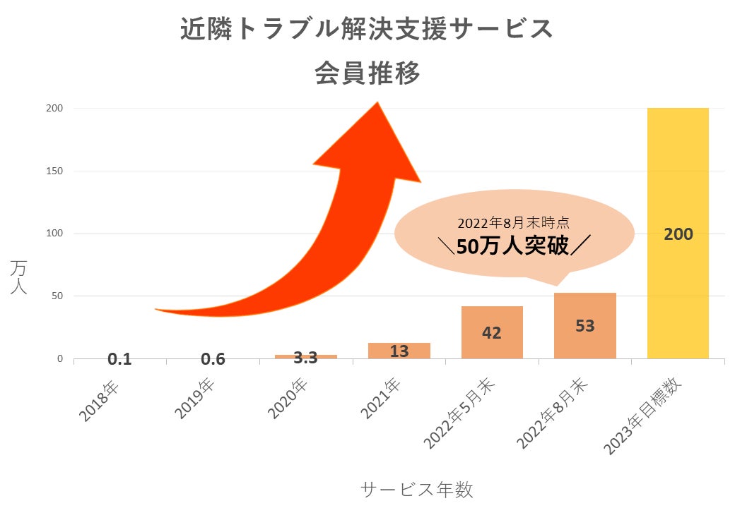 近隣トラブル解決支援サービスを主要事業として展開する株式会社ヴァンガードスミス(代表取締役:田中慶太 以下、「当社」)は、近隣トラブル解決支援サービスの全国会員数が50万人を突破したことを、本日発表します。