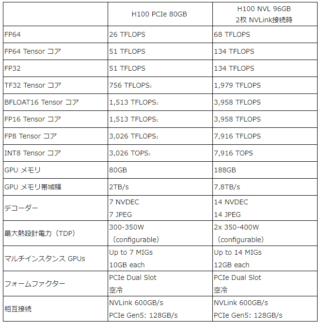 大規模AI向けGPUカード NVIDIA®H100 NVL 94GB 受注開始のお知らせ