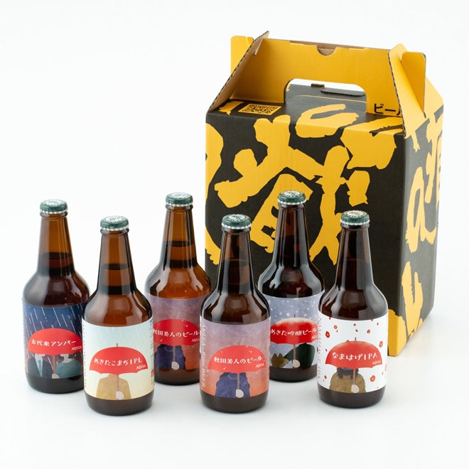 6本(秋田美人のビール2本、なまはげIPA1本、あきた吟醸ビール1本、古代米アンバー1本、あきたこまちIPL1本 各330ml)