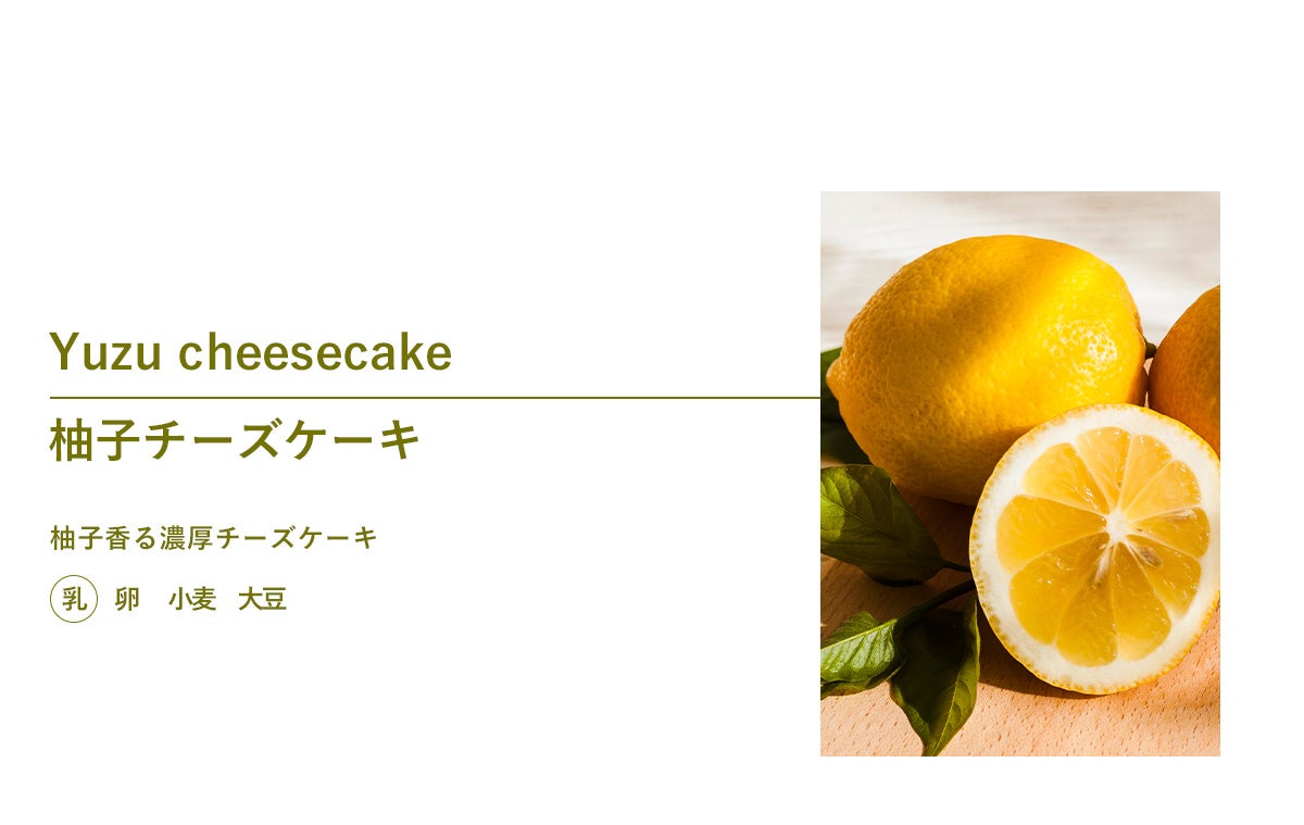 柚子と濃厚なクリームチーズを組み合わせた後味さっぱりの『柚子チーズケーキ』と