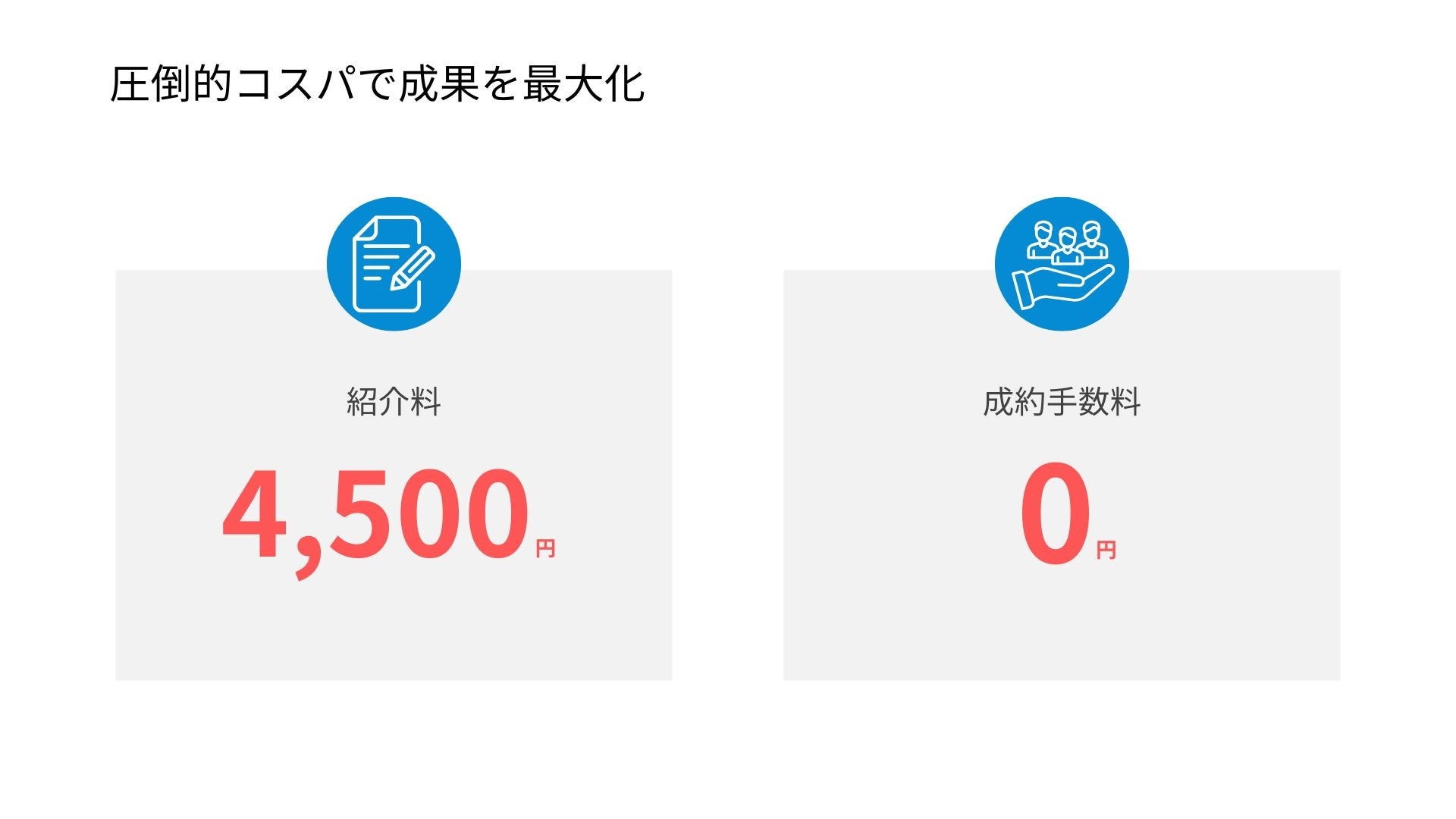 紹介料で数万円、成約手数料で10%〜20%の費用がかかる仲介業者が多いです。ですが、このプランでは、紹介手数料は4,500円(税抜)、成約手数料は0円で顧客を獲得することができます。そのため、より多くの利益をそのまま確保することができます。