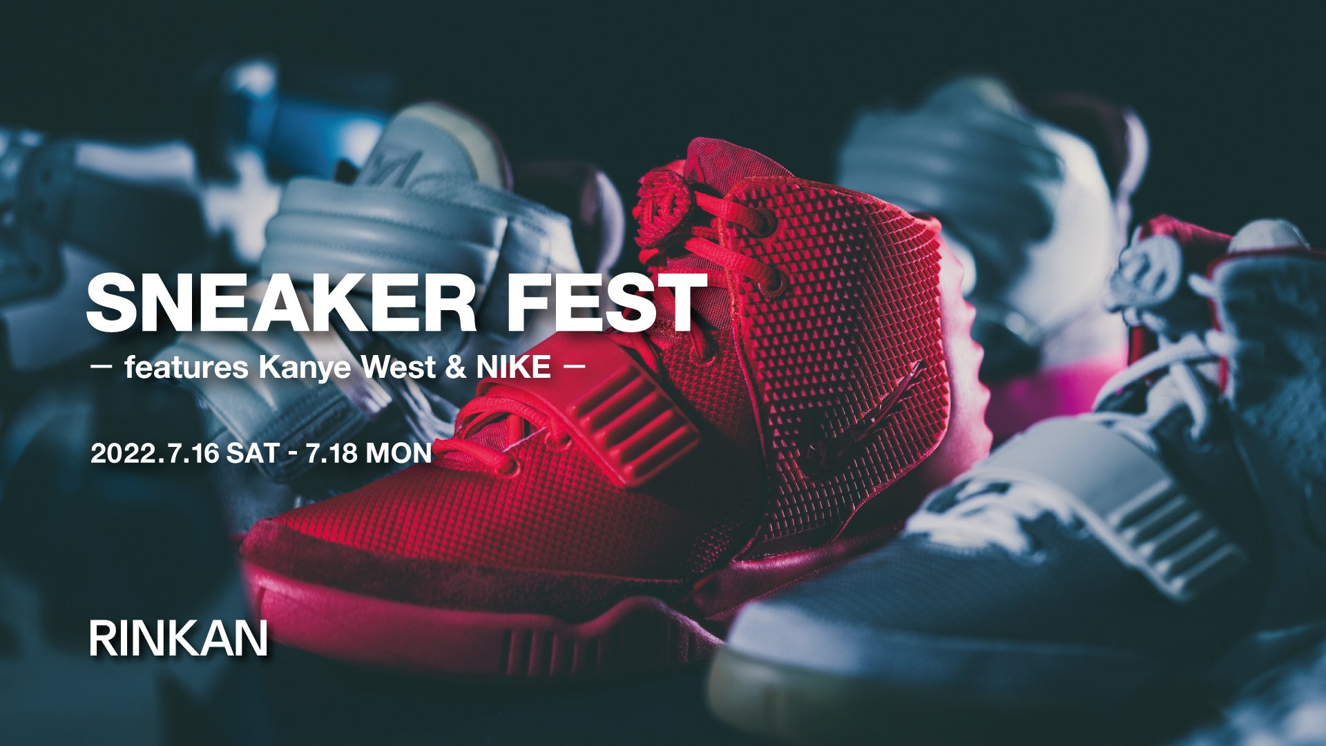 ストリートブランドやデザイナーズブランドの買取・販売を行うセレクトショップ「RINKAN SHIBUYA」は、2022年7月16日(土)から7月18日(月)の3日間、カニエ・ウェストのNIKE契約時の名作スニーカー「AIR YEEZY」シリーズの全モデルやNIKEの人気モデルを含む約500点を展示・販売するイベント「SNEAKER FEST - features Kanye West & NIKE -」を期間限定で開催いたします。