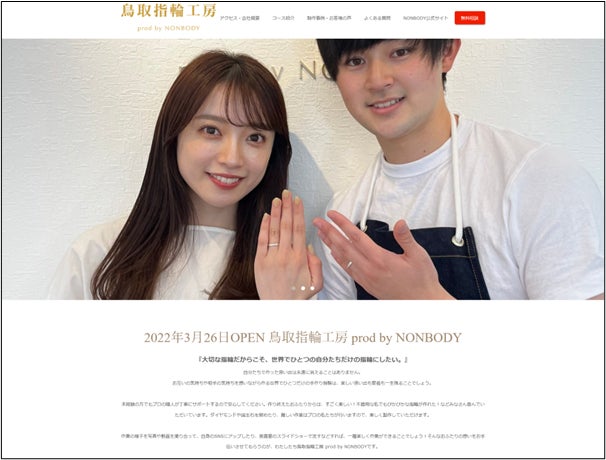 株式会社Webもりは、鳥取のジュエリー店「NONBODY」が展開する、結婚指輪の手作りサービス「鳥取指輪工房」のサイト制作を担当しました。