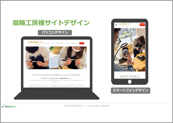 ホームページ作成や、ウェブ広告などウェブ関連サービスを提供する株式会社Webもり(本社:鳥取県鳥取市、代表取締役:大森誠)が、結婚指輪の手作りサービスを提供する「鳥取指輪工房」のサイト制作を担当しました。