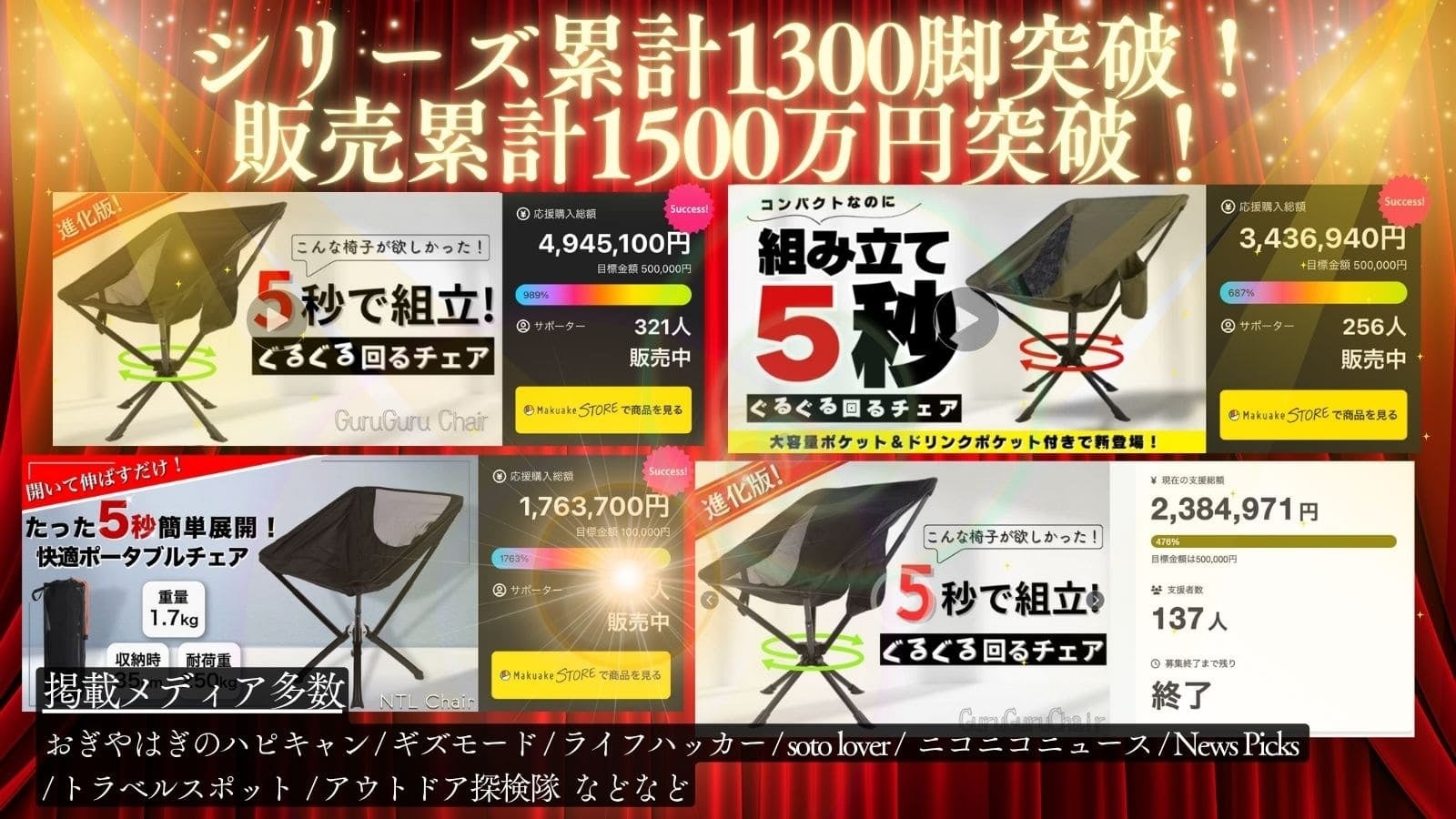 【360度回転×秒速設置】わずか5秒で完成!持ち運べる“あなただけの特等席” 進化したアウトドアチェア GuruGuruChair3 が登場!