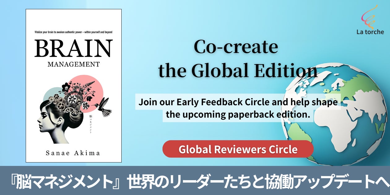 株式会社La torche(本社:東京都千代田区、代表取締役:秋間早苗)は、代表・秋間の著書『脳マネジメント〜脳を味方にして独自性と創造性を発揮する技術〜』の英語版『Brain Management』のグローバル版ペーパーバック制作に向けた新たな取り組み「Global Reviewers Circle」を2025年8月より開始しました。