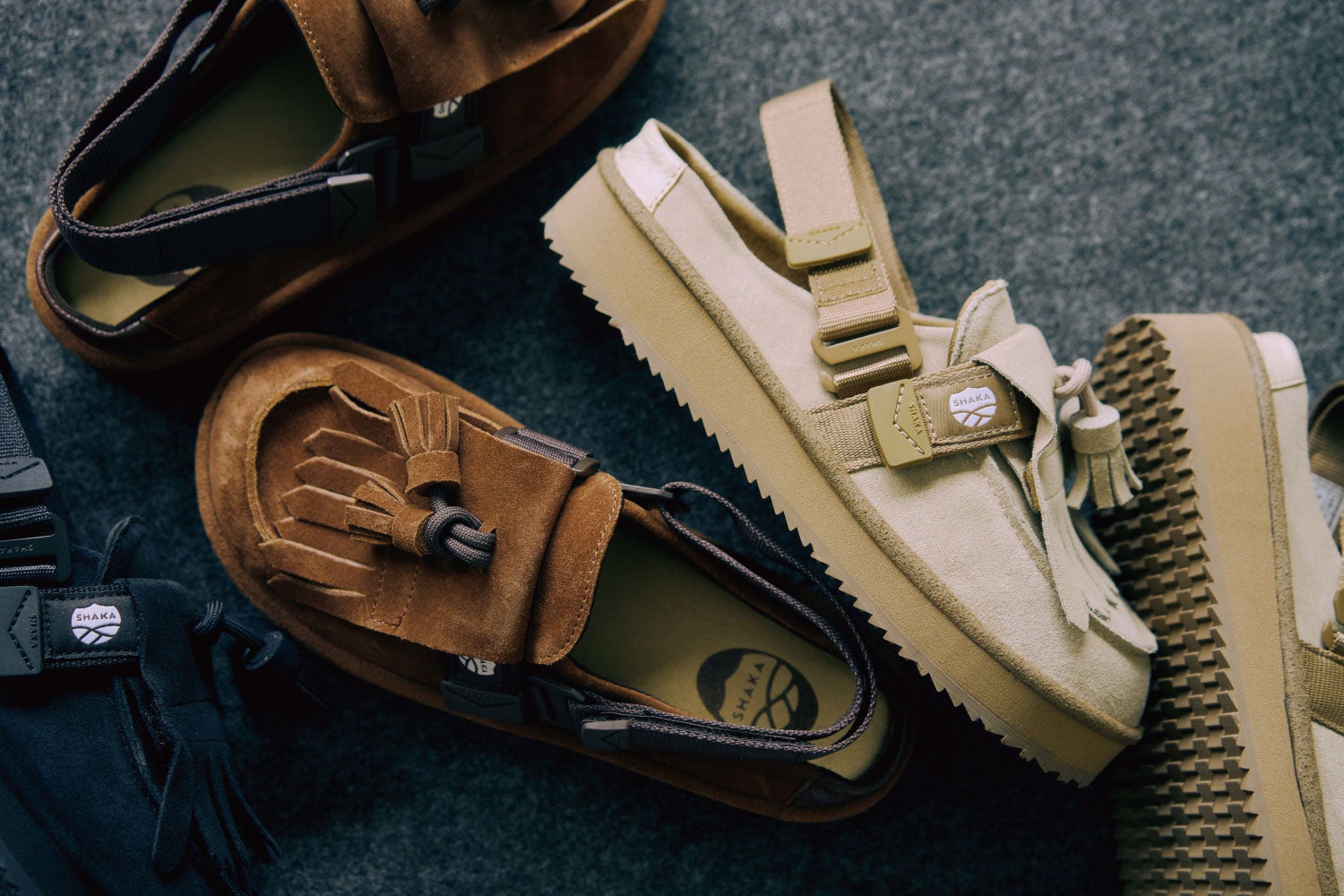 フットウェアブランド「シャカ」からトラッドなモカシンをサンダル風にアレンジした一足が発売します。アッパーにはキルトタッセルとリアルスウェードをあしらい、クラス感のあるスタイルを交えてカジュアルだけでないドレッシーな雰囲気を演出。