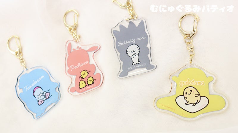 \どのキャラクターがすき?♡/サンリオキャラクターズ とぅるるんアクリルキーホルダーと、ミニ巾着が6月9日〜「むにゅぐるみパティオ」で店頭販売を開始するよ!ECサイトで予約販売も受付中!