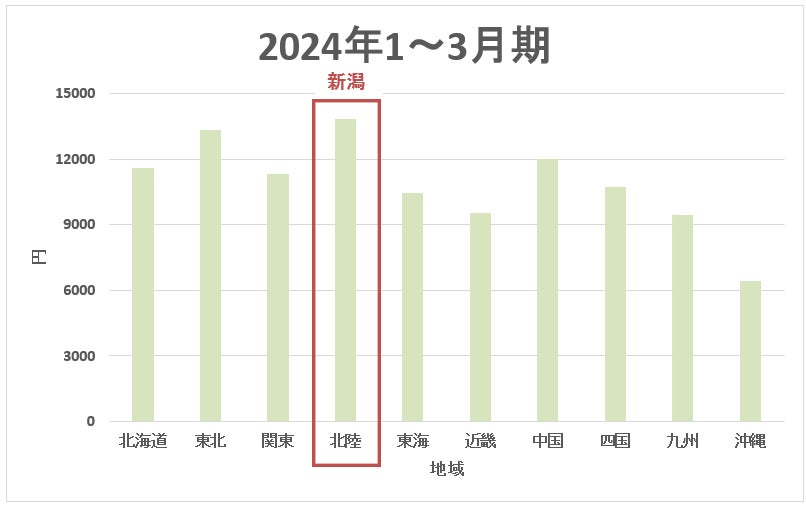 北海道地方や東北地方、北陸地方、中国地方といった豪雪地帯は、暖房を使う期間が長いため、おおむね電気代が高めの傾向にあります。なかでも北陸(新潟)は特に水準が高く、地域特性が生活コストに直結していることが分かります。