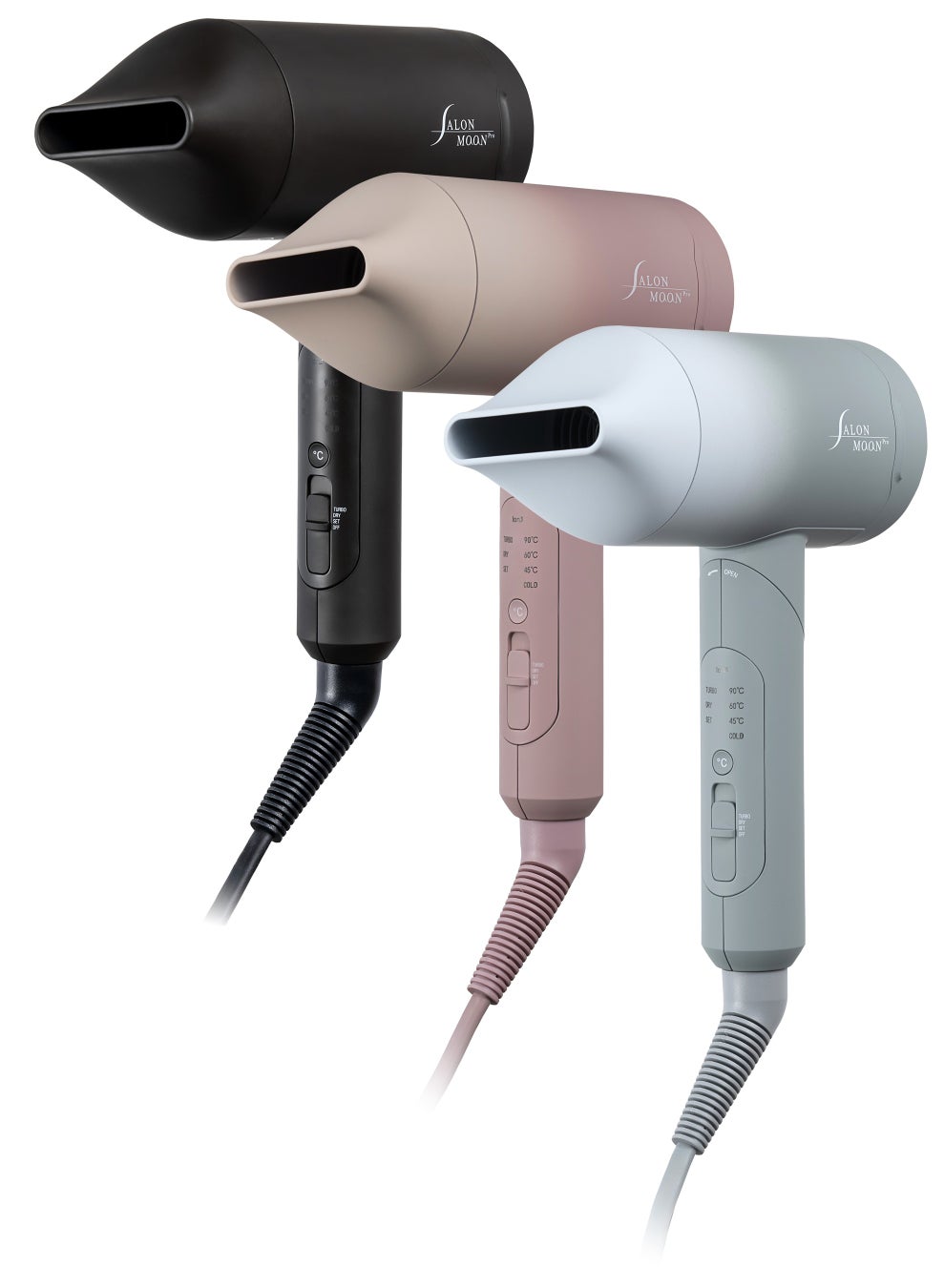 3.6億点*¹以上の商品の中で1番売れ、楽天総合ランキング1位*²を獲得したヘアアイロンを販売するブランド「SALONMOON」より、ブランド初となるドライヤーを発売。ヘアケアにこだわるお客様のニーズに応えるべく研究を重ね、速乾性・髪の美しさ・利便性を兼ね備える高機能のドライヤーを開発しました。3色の中から、お好みのカラーをお選びいただけます。